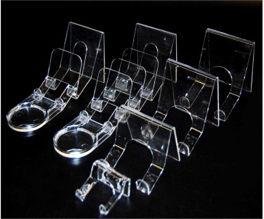 Our 2-Part Black Acrylic Plate Stand is laser-cut from 1/8” glossy black acrylic and features deep curves to cradle plates or platters. An extra high lip at the base of each arm ensures the plate is securely displayed. Easy to assemble.